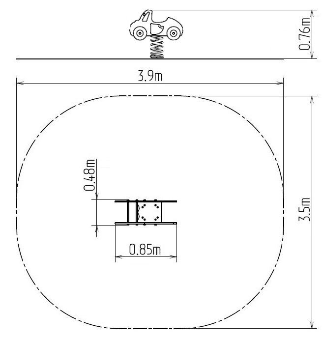 Balansoar pe arcuri - AȘINĂ. Nu este necesară o zonă de cădere până la înălțimea de 1 m, o suprafață cu iarbă este suficientă. Mai multe informaţii