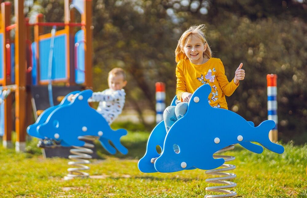 Balansoar pe arcuri - DELFIN. Nu este necesară o zonă de cădere până la înălțimea de 1 m, o suprafață cu iarbă este suficientă. Mai multe informaţii