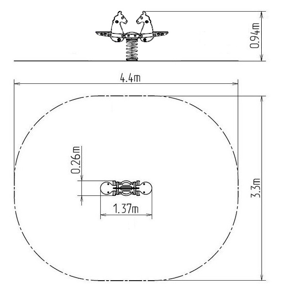 Balansoar pe arcuri - DUO CAL. Nu este necesară o zonă de cădere până la înălțimea de 1 m, o suprafață cu iarbă este suficientă. Mai multe informaţii