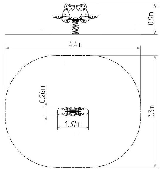 Balansoar pe arcuri - DUO DALMAȚIAN. Nu este necesară o zonă de cădere până la înălțimea de 1 m, o suprafață cu iarbă este suficientă. Mai multe informaţii