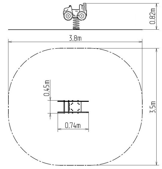 Balansoar pe arcuri - JEEP. Nu este necesară o zonă de cădere până la înălțimea de 1 m, o suprafață cu iarbă este suficientă. Mai multe informaţii