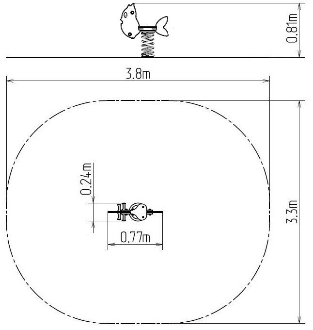 Balansoar pe arcuri - PEŞTE. Nu este necesară o zonă de cădere până la înălțimea de 1 m, o suprafață cu iarbă este suficientă. Mai multe informaţii