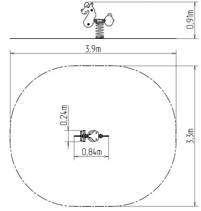 Balansoar pe arcuri - PONEI. Nu este necesară o zonă de cădere până la înălțimea de 1 m, o suprafață cu iarbă este suficientă. Mai multe informaţii