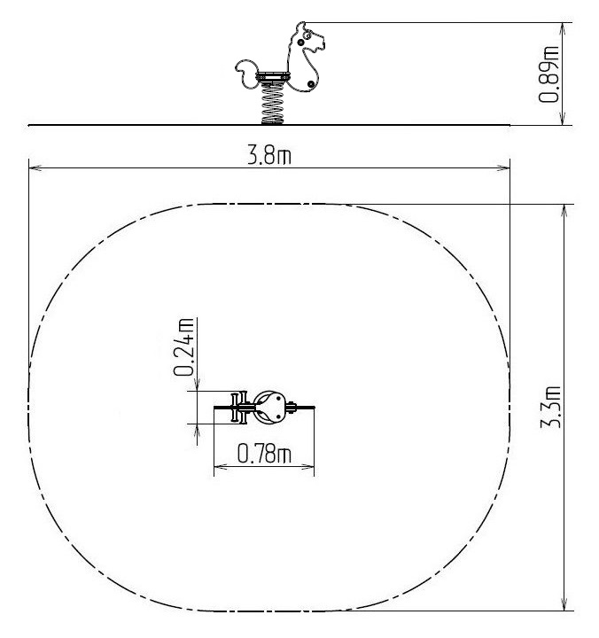 Balansoar pe arcuri - PONY. Nu este necesară o zonă de cădere până la înălțimea de 1 m, o suprafață cu iarbă este suficientă. Mai multe informaţii