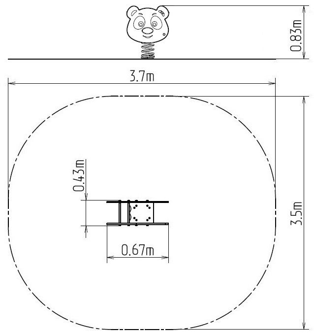 Balansoar pe arcuri - URS PANDA. Nu este necesară o zonă de cădere până la înălțimea de 1 m, o suprafață cu iarbă este suficientă. Mai multe informaţii