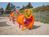 Capul și picioarele câinelui sunt fabricate din plastic HDPE de înaltă calitate (polietilenă colorată de înaltă densitate, caracterizată printr-o stabilitate ridicată a culorii, rezistență la radiații UV, însă, în principal, siguranță, deoarece nu se sparge și nu există, astfel, pericolul de vătămare corporală a copiilor din cauza fragmentelor ascuțite). Tunelele cu frânghii sunt realizate din material HERKULES (frânghii cu grosimea de 16 mm din polipropilenă cu miez interior din oțel) și sunt conectate cu îmbinări din plastic sau aluminiu. Tunelele pentru mers de-a bușilea sunt realizate din fibră de sticlă care este stabilă la radiații UV și care prezintă o stabilitate ridicată a culorii. Toate materialele de fixare sunt galvanizate sau sunt realizate din oțel inoxidabil.