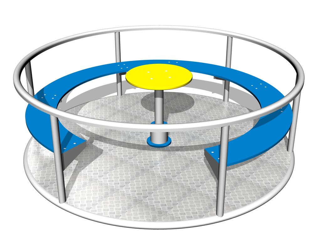 Caruselul este realizat prin sudarea unor țevi din oțel și a unor profile pătrate. Toate unitățile metalice sunt protejate împotriva coroziunii prin zincare, ceea ce conduce la o durată lungă de viață a elementelor pentru antrenament sau acoperite cu duplex strat de vopsea pe bază de pulberi întărite în conformitate cu RAL, pentru a preveni coroziunea. Structurile sunt fixate într-o fundație de beton. Caruselul este construit în jurul ideii de durabilitate și durată lungă de viață. Butucul de rotație și scaunele sunt realizate din plastic HDPE de înaltă calitate (polietilenă colorată de înaltă densitate, caracterizată printr-o stabilitate ridicată a culorii, rezistență la radiații UV, însă, în principal, siguranță, deoarece nu se sparge și nu există, astfel, pericolul de vătămare corporală a copiilor din cauza fragmentelor ascuțite). Platforma este realizată din tablă antiderapantă. Toate materialele de fixare sunt galvanizate sau sunt realizate din oțel inoxidabil.