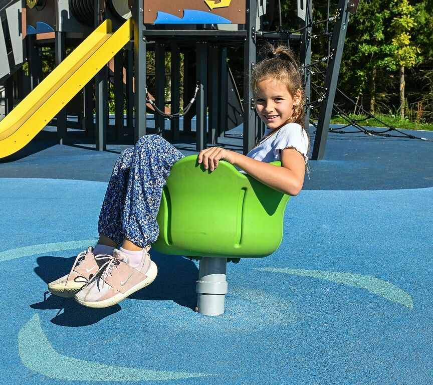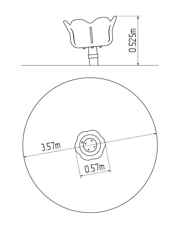 Carusel cu locuri în picioare KO142K - nu este necesară o zonă de cădere până la înălțimea de 1 m, o suprafață cu iarbă este suficientă.