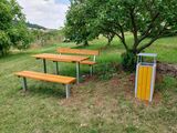 Coșul de gunoi este realizat din lemn de molid. Lemnul este impregnat și acoperit cu un strat de lac. Structura este fixată într-o fundație de beton. Cadrul metalic și inserția coșului de gunoi sunt realizate din oțel galvanizat. Inserția de coș de gunoi este realizată din oțel galvanizat. Toate celelalte elemente metalice sunt, de asemenea, zincate sau acoperite cu duplex strat de vopsea pe bază de pulberi întărite în conformitate cu RAL, pentru a preveni coroziunea.