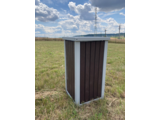 Coșul de gunoi este realizat din plastic reciclat. Structura este fixată într-o fundație de beton. Cadrul metalic și inserția coșului de gunoi sunt realizate din oțel galvanizat. Inserția de coș de gunoi este realizată din oțel galvanizat. Toate celelalte elemente metalice sunt, de asemenea, zincate sau acoperite cu duplex strat de vopsea pe bază de pulberi întărite în conformitate cu RAL, pentru a preveni coroziunea.
