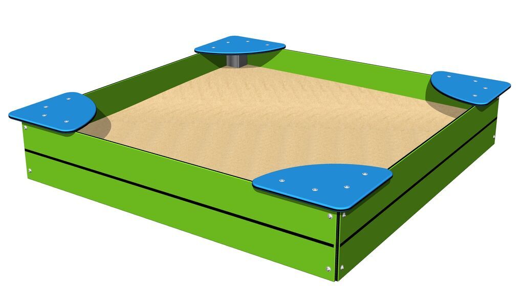 Groapa cu nisip este realizată din HPL (Laminat de înaltă presiune, caracterizată printr-o stabilitate ridicată a culorii însă și rezistența la apă). Scaunele sunt realizate din plastic HDPE de înaltă calitate (polietilenă colorată de înaltă densitate, caracterizată printr-o stabilitate ridicată a culorii, rezistență la radiații UV, însă, în principal, siguranță, deoarece nu se sparge și nu există, astfel, pericolul de vătămare corporală a copiilor din cauza fragmentelor ascuțite). Toate celelalte elemente metalice sunt, de asemenea, tratate prin zincate sau acoperite cu duplex strat de vopsea pe bază de pulberi întărite în conformitate cu RAL, pentru a preveni coroziunea. Toate elementele de fixare sunt galvanizate sau sunt realizate din oțel inoxidabil.
