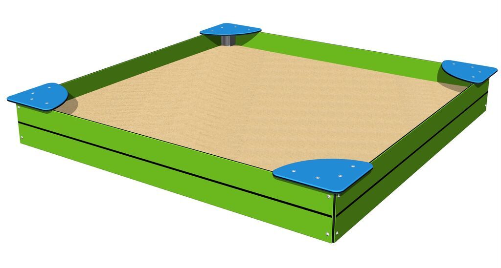 Groapa cu nisip este realizată din HPL (Laminat de înaltă presiune, caracterizată printr-o stabilitate ridicată a culorii însă și rezistența la apă). Scaunele sunt realizate din plastic HDPE de înaltă calitate (polietilenă colorată de înaltă densitate, caracterizată printr-o stabilitate ridicată a culorii, rezistență la radiații UV, însă, în principal, siguranță, deoarece nu se sparge și nu există, astfel, pericolul de vătămare corporală a copiilor din cauza fragmentelor ascuțite). Toate celelalte elemente metalice sunt, de asemenea, tratate prin zincate sau acoperite cu duplex strat de vopsea pe bază de pulberi întărite în conformitate cu RAL, pentru a preveni coroziunea. Toate elementele de fixare sunt galvanizate sau sunt realizate din oțel inoxidabil.