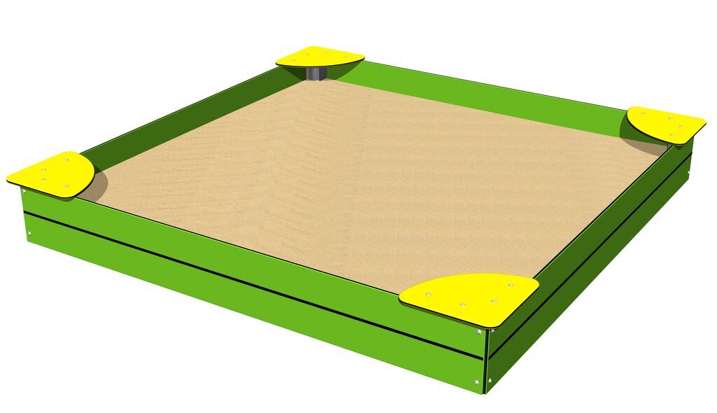 Groapa cu nisip este realizată din HPL (Laminat de înaltă presiune, caracterizată printr-o stabilitate ridicată a culorii însă și rezistența la apă). Scaunele sunt realizate din plastic HDPE de înaltă calitate (polietilenă colorată de înaltă densitate, caracterizată printr-o stabilitate ridicată a culorii, rezistență la radiații UV, însă, în principal, siguranță, deoarece nu se sparge și nu există, astfel, pericolul de vătămare corporală a copiilor din cauza fragmentelor ascuțite). Toate celelalte elemente metalice sunt, de asemenea, tratate prin zincate sau acoperite cu duplex strat de vopsea pe bază de pulberi întărite în conformitate cu RAL, pentru a preveni coroziunea. Toate elementele de fixare sunt galvanizate sau sunt realizate din oțel inoxidabil.