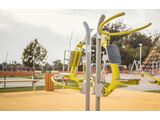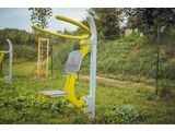 Scaunul și spătarul sunt realizate din aluminiu și acoperite cu polietilenă HDPE (polietilenă complet colorată, de înaltă densitate, caracterizată printr-o stabilitate ridicată a culorilor și rezistență la radiațiile UV). Mânerele sunt realizate din tuburi de oțel vopsite în câmp electrostatic. Coloana de susținere este realizată dintr-un tub de oțel cu o flanșă de montare la bază. Cadrul scaunului şi locul pentru pus piciorul sunt realizate din tablă metalică vopsită în câmp electrostatic. Se utilizează rulmenți pentru conexiunile mobile. Orificiile sunt etanșate cu elemente din oțel la capete. Toate elementele de fixare sunt inoxidabile.