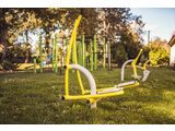Funcții: Dezvoltă extremităţile inferioare, construieşte muşchii coapsei şi ai gambelor, împreună cu muşchii lombari şi cei abdominali. Îmbunătăţeşte rezistenţa inimii şi funcţia vaselor de sânge, precum şi coordonarea întregului corp. Instrucțiuni: Poziţionaţi-vă cu tălpile pe platformele mici şi apucaţi ferm mânerele. Mişcaţi simultan mâinile şi picioarele ca şi cum aţi merge cu bicicleta. Ţineţi spatele drept. Mai multe informaţii