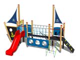 2 turnuri, tobogan, set de bare metalice într-un cadru din lemn, 2 stâlpi cu steag, tablă de desenat, acces la plasa înclinată, rampă înclinată cu frânghie și trepte HDPE, ancoră, timonă din HDPE, pod cu balustradă de frânghie, barieră din HDPE, bariere cu o deschidere, 2x bariere din HDPE. Mai multe informaţii