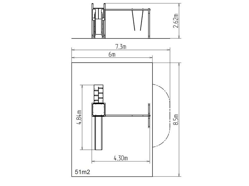 | Suprafață de amortizare la cădere: | Cauciuc sau pietriș 51 m2 |