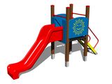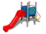 Turn, tobogan, 2 bariere, rampă înclinată cu trepte și mânere metalice. Mai multe informaţii