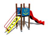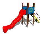 Turn, tobogan, 2 bariere, rampă înclinată cu trepte și mânere metalice. Mai multe informaţii