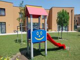 Turn, tobogan, acoperiș în formă de A, 2 bariere, scară. Mai multe informaţii