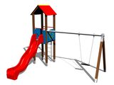 Scaunele și balamalele nu fac parte din leagăn. Este necesar să cumpărați un scaun (1 bucăți) la alegere și draperii (2 bucăți). Turn, tobogan, acoperiș în formă de A, 2 bariere, scară, grinda metalica. Mai multe informaţii