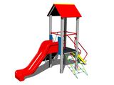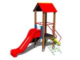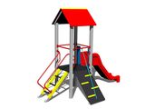 Turn, tobogan, acoperiș în formă de A, rampă înclinată cu trepte și mânere metalice, rampă înclinată cu frânghie și trepte HDPE, acces la plasa înclinată. Mai multe informaţii