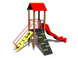 Turn, tobogan, acoperiș în formă de A, rampă înclinată cu trepte și mânere metalice, rampă înclinată cu acoperiș și trepte HDPE, acces la plasa înclinată. Mai multe informaţii