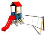 Scaunele și balamalele nu fac parte din leagăn. Este necesar să cumpărați un scaun (1 bucăți) la alegere și draperii (2 bucăți). Turn, tobogan, acoperiș în formă de A, 2 bariere, rampă înclinată cu trepte și mânere metalice, grinda metalica. Mai multe informaţii