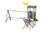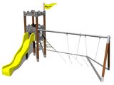 Scaunele și balamalele nu fac parte din leagăn. Este necesar să cumpărați un scaun (2 bucăți) la alegere și draperii (4 bucăți). Turnuri, tobogane, 2 bariere din HDPE, acces la plasă înclinată, steag, creneluri din HDPE, grinda metalica. Mai multe informaţii