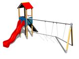 Structura de susținere a unității cu turn este realizată cu suporturi din lemn groase, lipite. Această soluție asigură o protecție maximă împotriva fisurării, problemă comună la produsele realizate din lemn masiv. Suporturile din lemn sunt impregnate și acoperite cu un strat triplu de lac, care respectă termenii și condițiile standardului EN71/3 (sigur pentru jucăriile copiilor). Structurile sunt ancorate în sol cu plăci din oțel care sunt protejate împotriva coroziunii prin galvanizare la cald și sunt fixate într-o fundație de beton. Ancorele sunt fixate pe unitatea de joacă cu şuruburi, iar structura lor garantează că nu intră în contact direct cu solul. Toate celelalte elemente metalice sunt, de asemenea, zincate sau acoperite cu duplex strat de vopsea pe bază de pulberi întărite în conformitate cu RAL, pentru a preveni coroziunea.