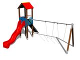 Scaunele și balamalele nu fac parte din leagăn. Este necesar să cumpărați un scaun (2 bucăți) la alegere și draperii (4 bucăți). Turn, tobogan, acoperiș în formă de A, 2 bariere, rampă înclinată cu frânghie și trepte HDPE, leagăn cu lanț cu două locuri. Mai multe informaţii
