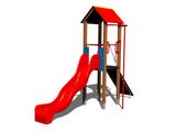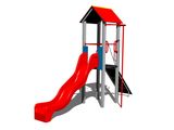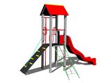Turn, tobogan, acoperiș în formă de A, stâlp de pompieri, rampă înclinată cu frânghie și trepte HDPE, acces la plasa înclinată. Mai multe informaţii