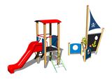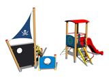 Turn, tobogan, acoperiș boltit, bariere, stâlp cu steag, tablă de desenat, acces la plasa înclinată, ancoră, timonă din HDPE, 2 bariere cu o deschidere, rampă înclinată cu trepte și mânere metalice. Mai multe informaţii