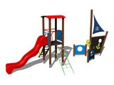 Turn, tobogan, acoperiș boltit, bariere, stâlp cu steag, tablă de desenat, acces la plasa înclinată, ancoră, timonă din HDPE, 2 bariere cu o deschidere, rampă înclinată cu trepte și mânere metalice. Mai multe informaţii