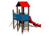 2 turnuri, tobogan, acoperiș în formă de A, tablă de desenat, acces la plasa înclinată, 4 bariere din HDPE, abac. Mai multe informaţii