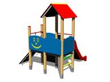 2 turnuri, tobogan, acoperiș în formă de A, tablă de desenat, rampă înclinată cu frânghie și trepte HDPE, 4 bariere din HDPE, abac. Mai multe informaţii