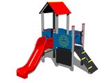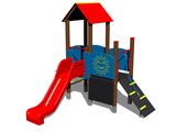 2 turnuri, tobogan, acoperiș în formă de A, tablă de desenat, rampă înclinată cu frânghie și trepte HDPE, 4 bariere din HDPE, abac. Mai multe informaţii
