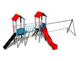 Scaunele și balamalele nu fac parte din leagăn. Este necesar să cumpărați un scaun (2 bucăți) la alegere și draperii (4 bucăți). 2 turnuri, tobogan, 2 acoperișuri în formă de A, grinda metalica, rampă înclinată cu trepte și mânere metalice, scară înclinată cu trepte metalice, punte cu corzi, perete de cățărare înclinat cu suporturi de cățărare, 2 bariere din HDPE. Mai multe informaţii