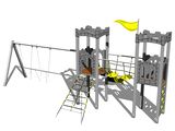 Scaunele și balamalele nu fac parte din leagăn. Este necesar să cumpărați un scaun (2 bucăți) la alegere și draperii (4 bucăți). 2 turnuri, tobogane, 3 bariere din HDPE, acces la plasă înclinată, perete de cățărare vertical, steag, 2 creneluri din HDPE, grinda metalica, pod de frânghie cu trepte. Mai multe informaţii