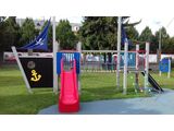 2 turnuri, tobogan, set de bare metalice într-un cadru metalic, 2 stâlpi cu steag, tablă de desenat, acces la plasa înclinată, rampă înclinată cu frânghie și trepte HDPE, ancoră, timonă din HDPE, punte cu corzi, 2 bariere din HDPE. Mai multe informaţii