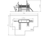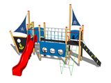 2 turnuri, tobogan, set de bare metalice într-un cadru din lemn, 2 stâlpi cu steag, tablă de desenat, acces la plasa înclinată, rampă înclinată cu frânghie și trepte HDPE, ancoră, timonă din HDPE, pod cu balustradă de frânghie, barieră din HDPE, bariere cu o deschidere, 2x bariere din HDPE. Mai multe informaţii