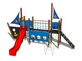 2 turnuri, tobogan, set de bare metalice într-un cadru din lemn, 2 stâlpi cu steag, tablă de desenat, acces la plasa înclinată, rampă înclinată cu frânghie și trepte HDPE, ancoră, timonă din HDPE, pod cu balustradă de frânghie, barieră din HDPE, bariere cu o deschidere, 2x bariere din HDPE. Mai multe informaţii