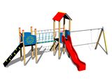 Toboganul este realizat din fibră de sticlă triplu stratificată. Suprafețele toboganelor, treptelor etc. sunt realizate din plastic HDPE de înaltă calitate (polietilenă colorată de înaltă densitate, caracterizată printr-o stabilitate ridicată a culorii, rezistență la radiații UV, însă, în principal, siguranță, deoarece nu se sparge și nu există, astfel, pericolul de vătămare corporală a copiilor din cauza fragmentelor ascuțite). Puntea cu corzi și frânghia sunt realizate din material HERKULES (frânghii cu grosimea de 16 mm din polipropilenă cu miez interior din oțel) și sunt conectate cu îmbinări din plastic sau aluminiu. Platformele și rampa sunt realizați din HPL (Laminat de înaltă presiune, caracterizată printr-o stabilitate ridicată a culorii însă și rezistența la apă). Acoperiș este realizați din HPL (Laminat de înaltă presiune, caracterizată printr-o stabilitate ridicată a culorii, rezistență la radiații UV, însă și rezistența la apă). Toate materialele de fixare sunt galvanizate sau sunt realizate din oțel inoxidabil.