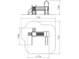 2 turnuri, tobogan, acoperiș în formă de A, rampă înclinată cu frânghie și trepte HDPE, punte cu corzi, rampă înclinată cu trepte și mânere metalice, perete de cățărare vertical, bariere din HDPE. Mai multe informaţii