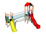 2 turnuri, 2 tobogane, acoperiș în formă de A, bariere din HDPE, acces la plasă înclinată, rampă înclinată cu frânghie și trepte HDPE, stâlp de pompieri, punte cu corzi. Mai multe informaţii