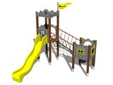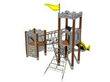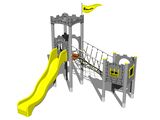 2 turnuri, tobogane, 3 bariere din HDPE, acces la plasă înclinată, punte cu corzi, perete de cățărare vertical, steag, creneluri din HDPE. Mai multe informaţii