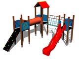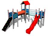 3 turnuri, tobogan, acoperiș în formă de A, perete de cățărare înclinat, punte cu corzi, scară, 5 bariere din HDPE, tunel pentru mers de-a bușilea între turnuri. Mai multe informaţii