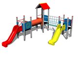 3 turnuri, 2 tobogane, acoperiș în formă de A, punte cu corzi, scară, 3 bariere din HDPE, tunel pentru mers de-a bușilea între turnuri, acces la plasa înclinată, rampă înclinată cu trepte și mânere metalice. Mai multe informaţii