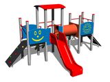 3 turnuri, tobogan, 3 bariere din HDPE, tunel pentru mers de-a bușilea între turnuri, acces la plasa înclinată, rampă înclinată cu frânghie și trepte HDPE, perete de cățărare înclinat, rampă înclinată cu trepte și mânere metalice. Mai multe informaţii