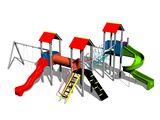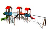 Scaunele și balamalele nu fac parte din leagăn. Este necesar să cumpărați un scaun (2 bucăți) la alegere și draperii (4 bucăți). 3 turnuri, tobogan, tobogan cu tub, 3 acoperișuri în formă de A, 6 bariere din HDPE, rampă înclinată cu frânghie și trepte HDPE, rampă înclinată cu trepte și mânere metalice, tunel pentru mers de-a bușilea între turnuri, punte cu corzi, grinda metalica, plasă de cățărare verticală. Mai multe informaţii
